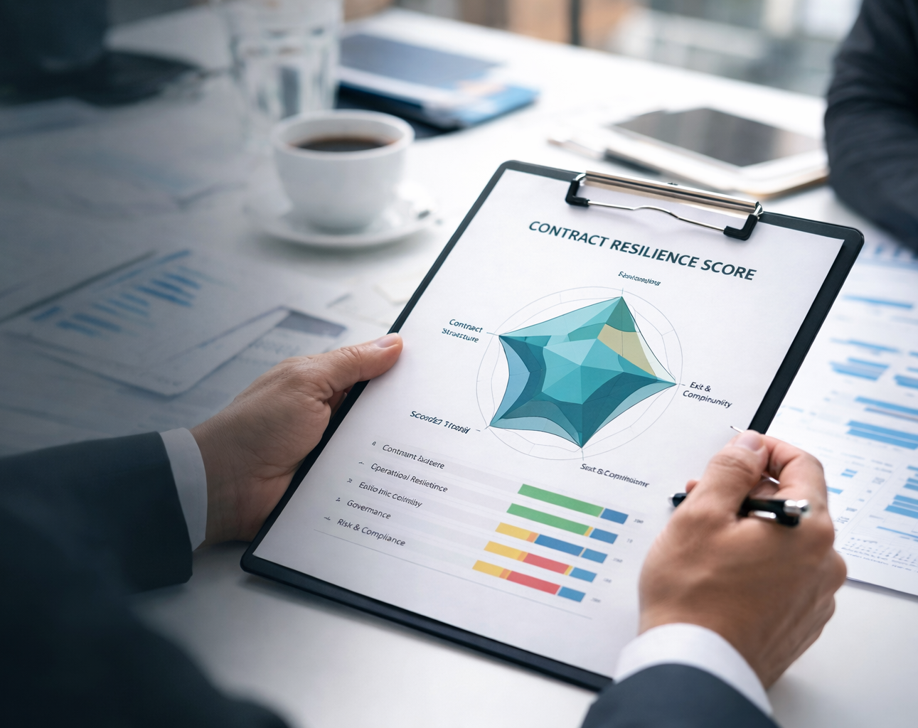 How resilient are your contracts? Many organisations don't know, until something fails! Contracts may appear to be standard, but do they adequately provide protection. Using this 40-question executive diagnostic you will receive an instant resilience score which will make clear your remendiation priorities. It converts complex contractual architecture into a single executive-grade resilience index